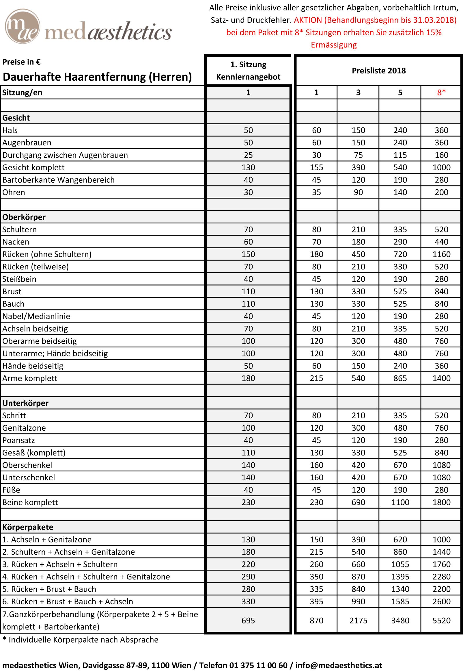 Preise Dauerhafte Haarentfernung Männer 2018 medaesthetics Wien